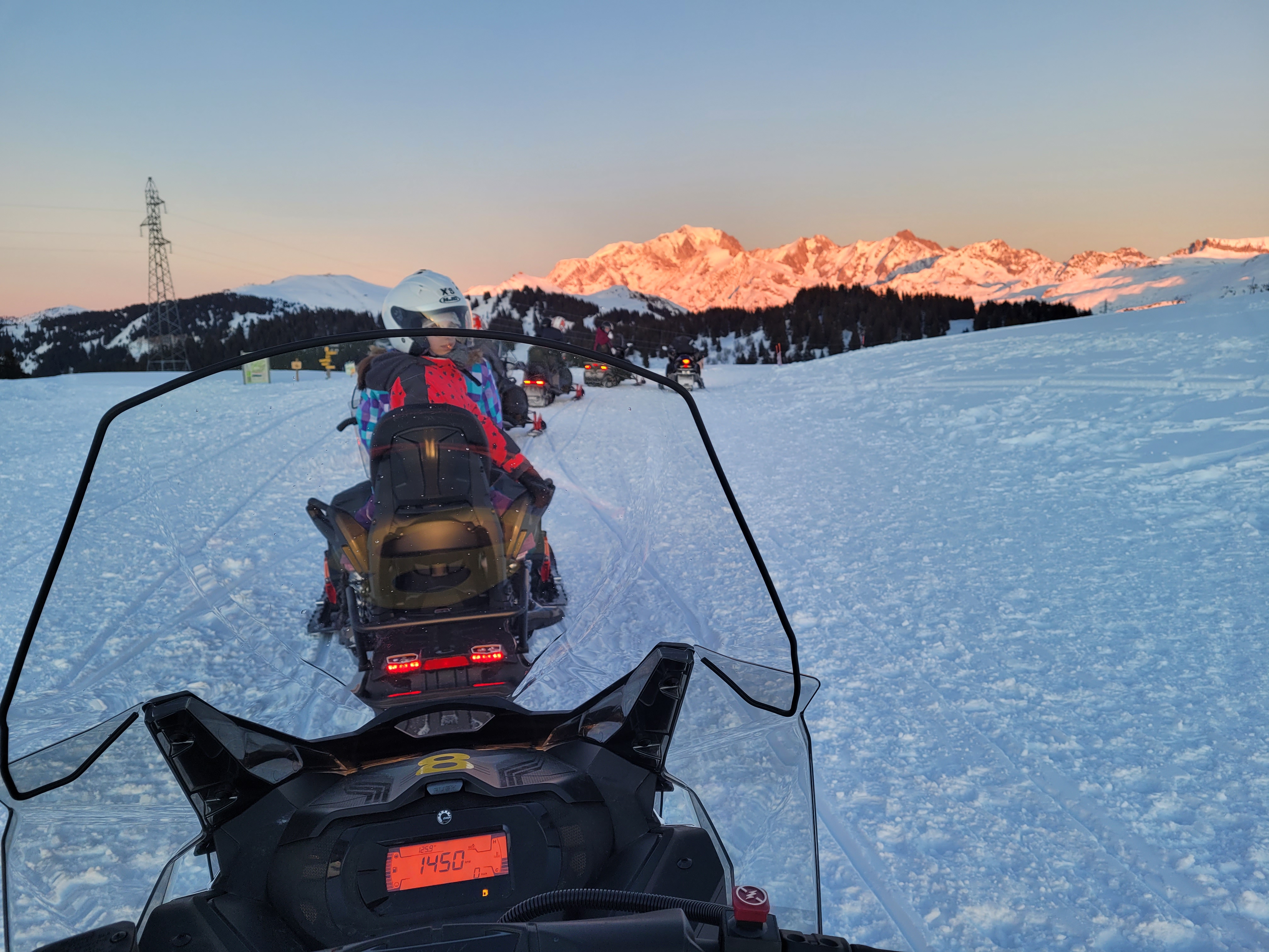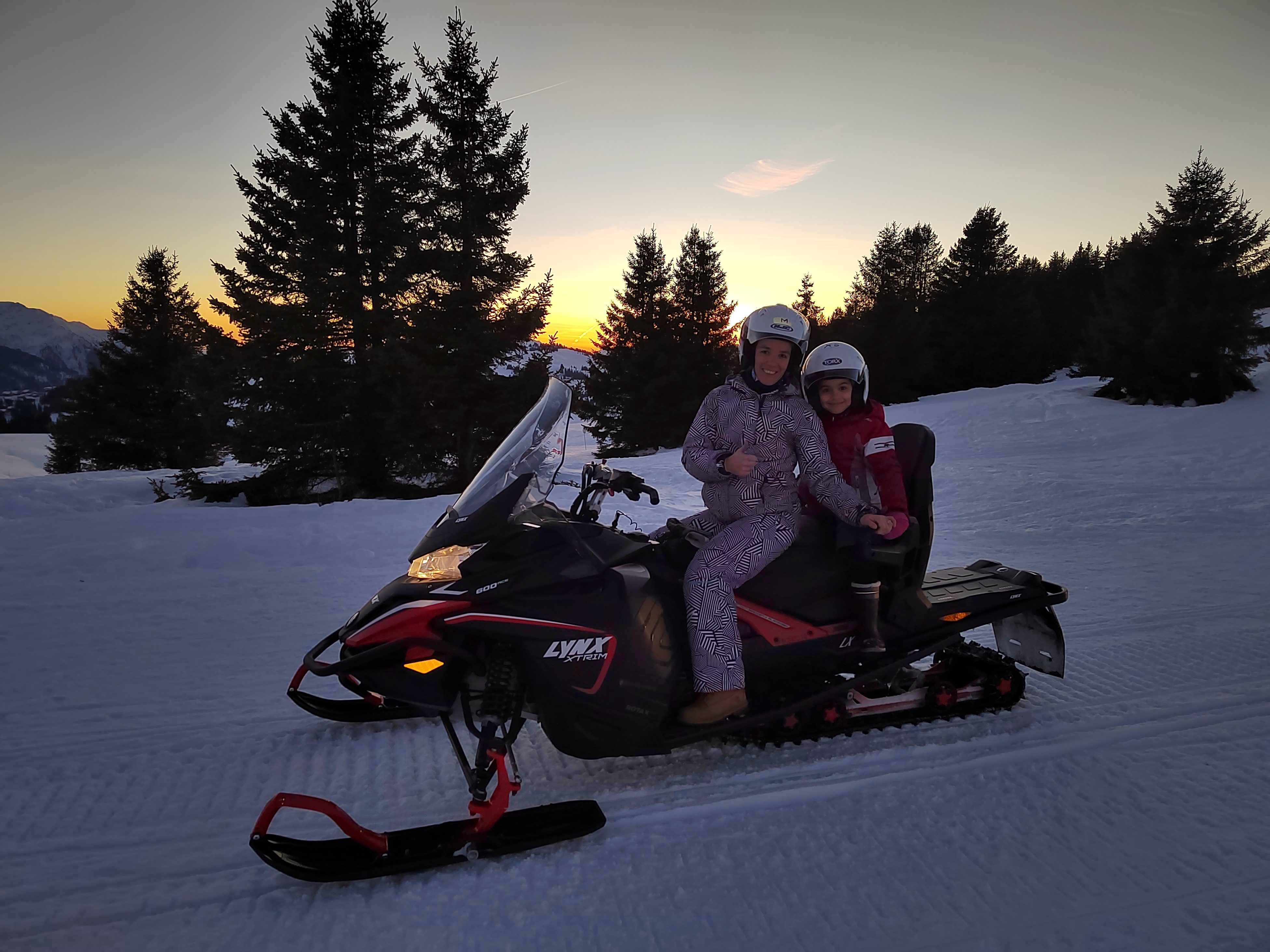 Super balade en moto neige pour le 1 janvier, coucher de soleil, sensations, au top, le moniteur petit Tom super sympa, à refaire